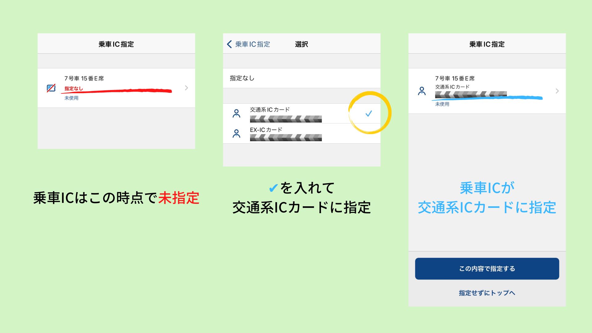 乗車ICはこの時点で未指定